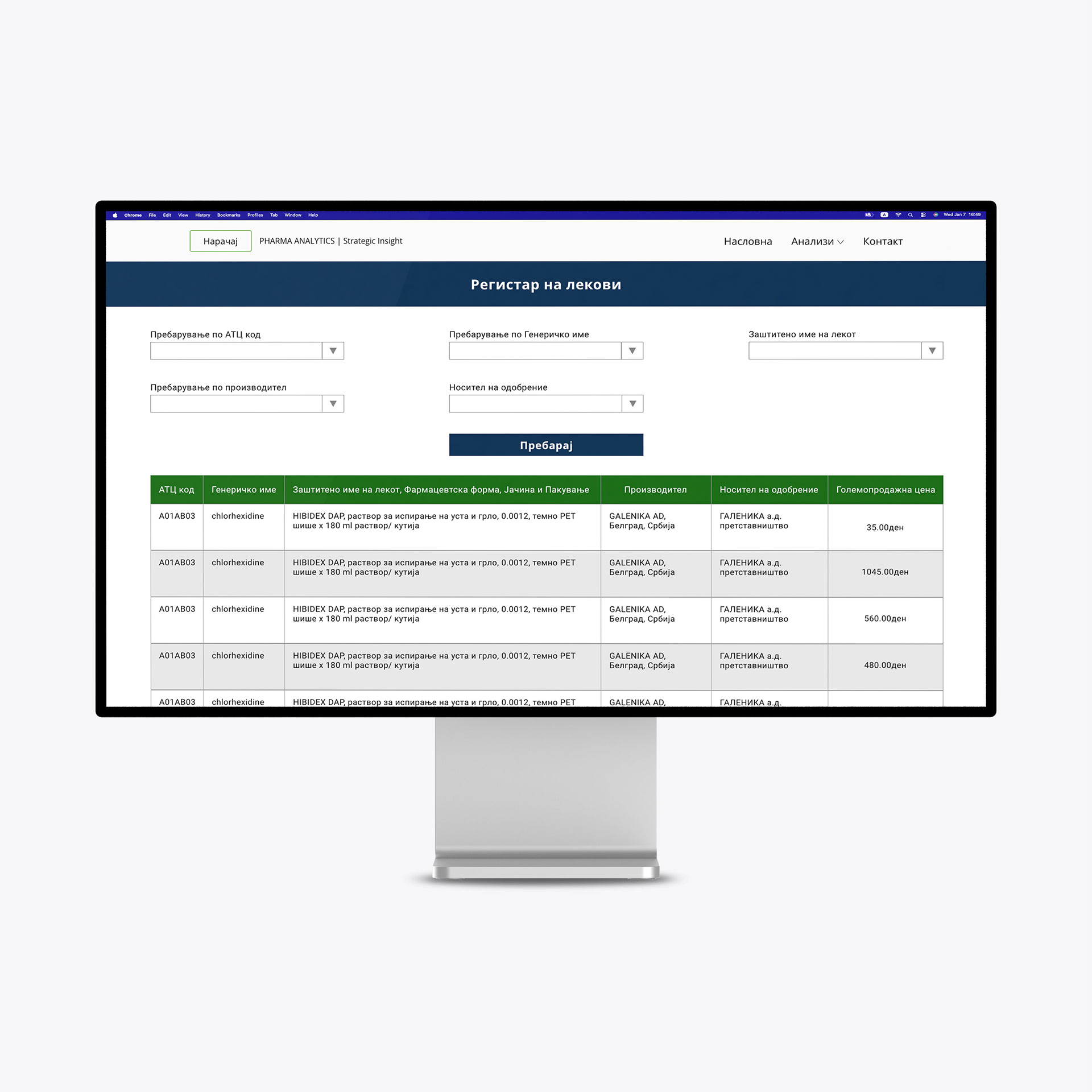 Pharma Analytics is a web application designed to automate the calculation and formation of wholesale drug prices in North Macedonia. Its primary goal is to replace manual copy-paste workflows in Excel spreadsheets with a streamlined digital process, enabling faster task completion, reduced human error, and optimized operational efficiency with fewer required staff.