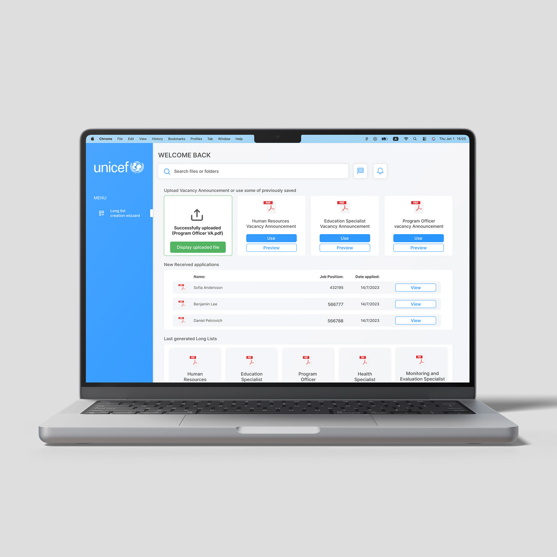 UX-focused project for UNICEF Hungary aimed at optimizing and automating their recruitment process. The project involved analyzing the existing hiring workflow, identifying usability issues and repetitive tasks, and designing a streamlined user flow that improved efficiency and clarity for HR teams. In close collaboration with UNICEF Hungary, we developed a web-based RPA bot as a solution for automating rule-based, repetitive actions within the recruitment process, reducing manual work while maintaining consistency, scalability, and a user-centered experience.